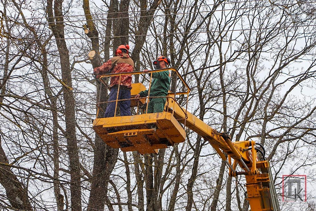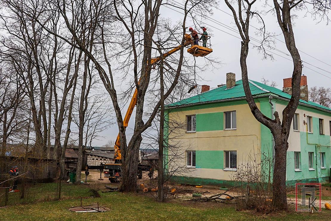 Фотофакт: Работники ЖКХ подрезают деревья возле жилого дома по ул. Советской