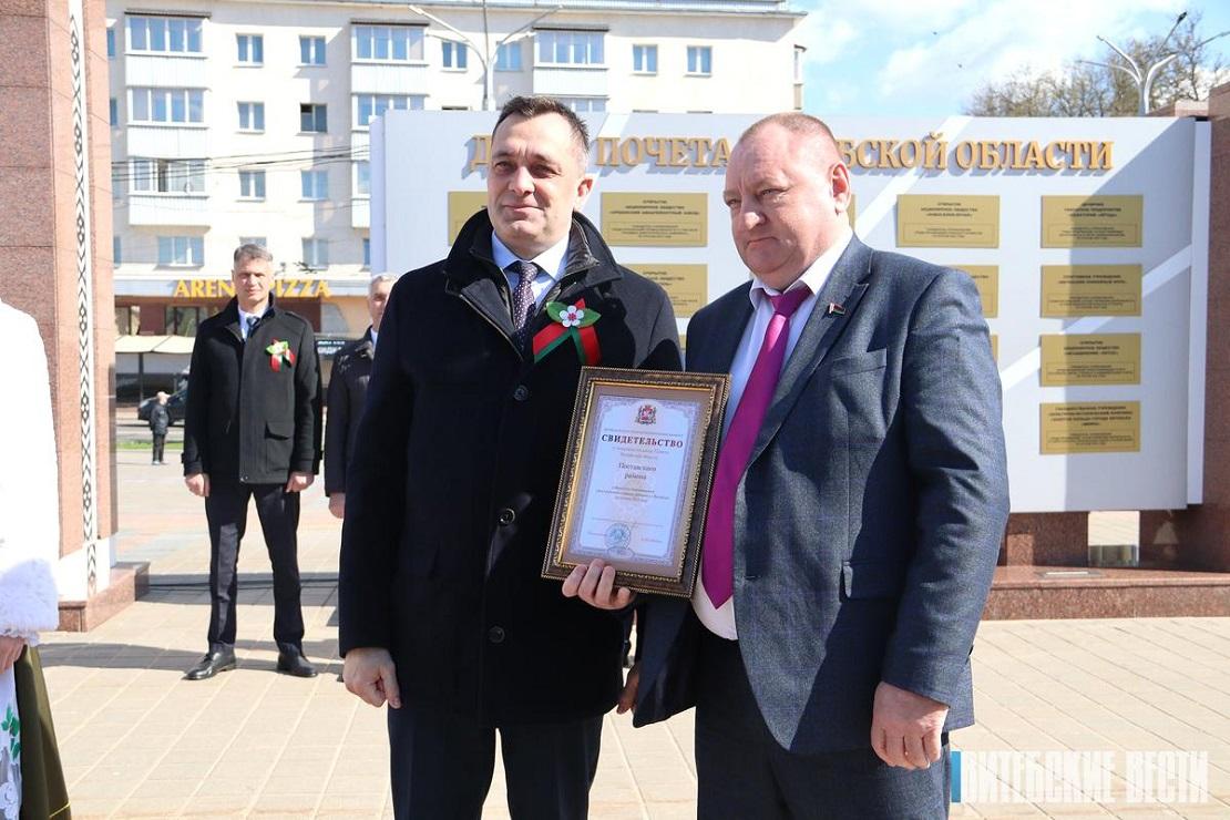 Па традыцыі напярэдадні Першамая ў Віцебску і Мінску прайшлі ўрачыстыя цырымоніі ўзнагароджання пераможцаў спаборніцтва ў сферы сацыяльна-эканамічнага развіцця за мінулы год. На абласную Дошку гонару занесены Віцебскі, Полацкі і Пастаўскі раёны, а таксама 40 прадпрыемстваў і арганізацый.