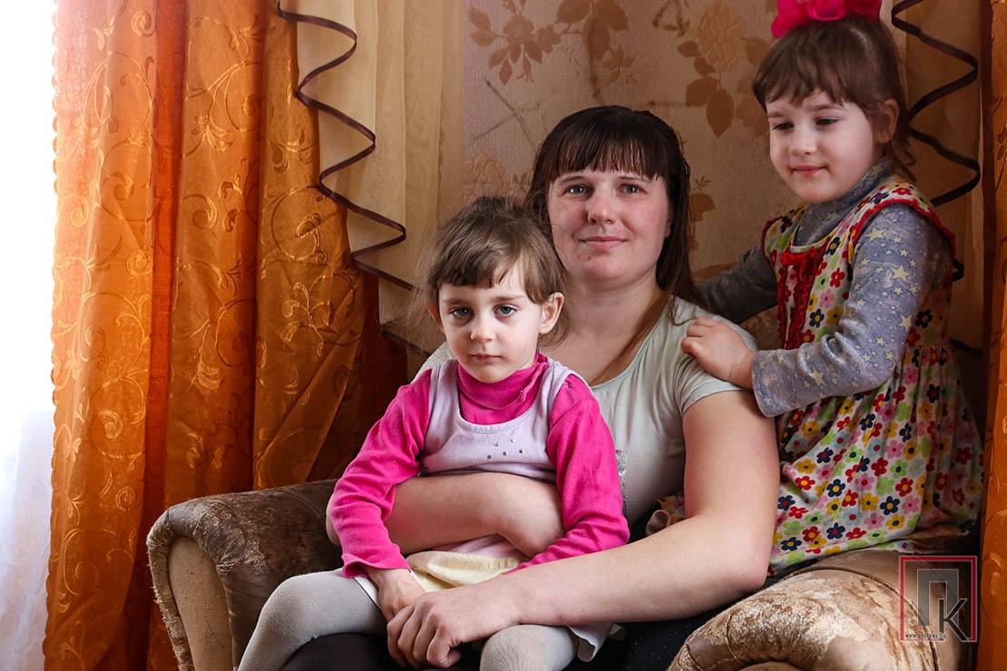 Раблю фотакадр, і разам з Алегам ідзём у дом знаёміцца з жаночай паловай сям’і. Чатырохгадовая Маргарыта сарамліва хаваецца за маму, трохгадовая Даша запытальна ўглядаецца ў незнаёмку. А я спрабую разгаварыць іх бацькоў.