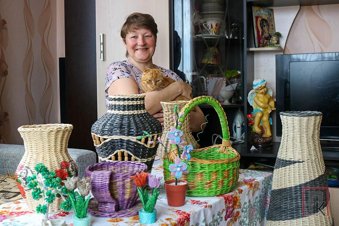 — Тэхналогія нескладаная, — расказвала. — Наразаю палоскі са старых газет і часопісаў, накручваю іх на пруток для вязання, для эластычнасці прамочваю спецыяльным растворам, прасушваю і пачынаю плесці.