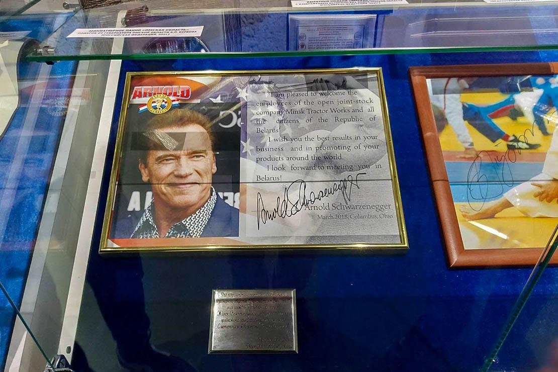 В музее МТЗ, который также расположен на территории предприятия, ребята познакомились с историей создания завода. Сегодня там располагаются не только артефакты, но и интерактивные зоны, 5D-кинотеатр, оборудовано место для проведения научно-практических конференций и поэтических вечеров. Неизгладимые впечатления на парней произвели подлинные автографы Владимира Путина и Арнольда Шварцнеггера, которые в своё время тоже побывали здесь.