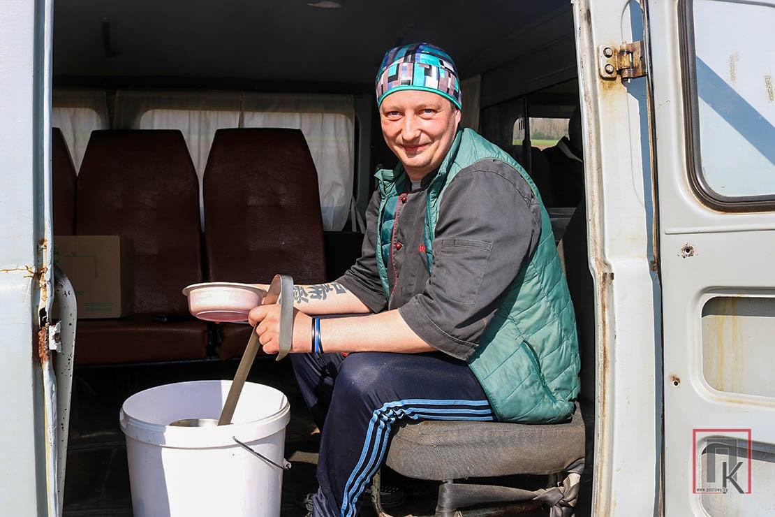 У вызначаны час повары раскладваюць гатовыя стравы па кантэйнерах, каб зручна было дастаўляць іх у поле. Першымі па абеды для работнікаў прыбываюць раздатчыцы Ала Лешчык, якая абслугоўвае механізатараў цешалаўскай зоны, і Марыя Цярлюк — лучайскай. Затым, загрузіўшыся, ад кафэ ад’язджае повар Сяргей Казека і накіроўваецца ў навасёлкаўскае аддзяленне. Па дарозе заязджае ў майстэрню, а адтуль — на палі, дзе ў гэтыя дні сеюць яравыя, падкормліваюць азімыя, пратручваюць рапс.