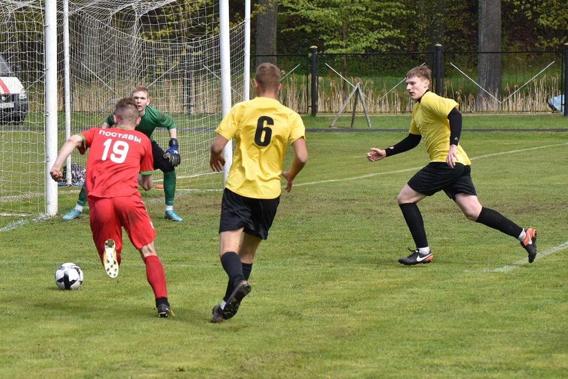 На 30-й хвіліне капітан і цэнтрфорвард пастаўчан Герман Чалей выбег без перашкод на вароты гарадокцаў, але прабіў побач са стойкай. Тут жа «львы» правялі кінжальную контратаку — 0:3. У няпростым становішчы маладыя пастаўчане змагаліся да канца, стварылі тры вострыя камбінацыі. Але, на жаль, іх падвяло няўменне трапна прабіваць заключныя ўдары.
