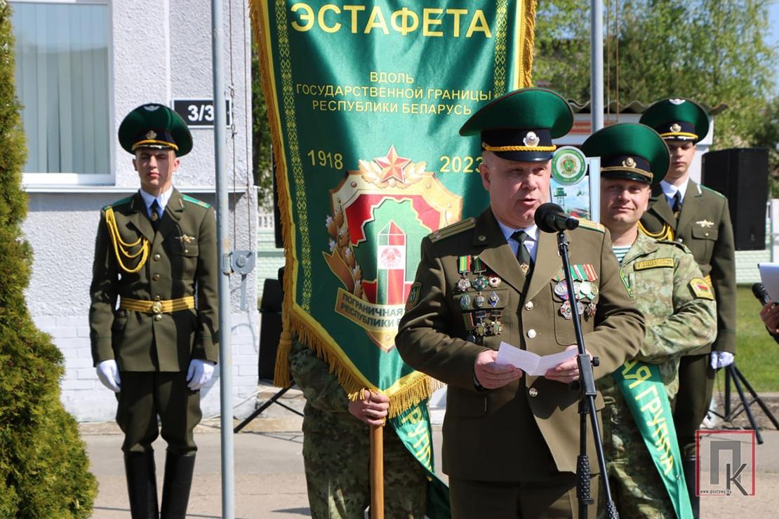 — Такая масштабная акция, приуроченная к значимым событиям истории нашего государства и погранслужбы, с момента обретения Беларусью независимости проводится пограничниками в 7-й раз, — говорил замначальника управления идеологической работы Госпогранкомитета, старший эстафетной группы Максим Литвинский. — Охрана границы — дело всенародное. Мы благодарны всем, кто к нему причастен: руководству страны и ведомства, стражам рубежей, белорусскому народу и искренне всех поздравляем с приближающимся праздником. Отрадно видеть на плацу учащихся и руководство СШ №4. Знаю, что в учебном заведении уделяется огромное внимание военно-патриотическому воспитанию молодёжи. Как следствие — только за последние 8 лет 14 его выпускников стали курсантами Института пограничной службы Республики Беларусь. Спасибо ветеранам за поддержку, мудрые советы, личный пример в сохранении пограничных традиций, за то, что и сегодня находятся в строю. Бывших пограничников не бывает! И, конечно, всем тем, кто сегодня надёжно охраняет рубежи нашей Родины.