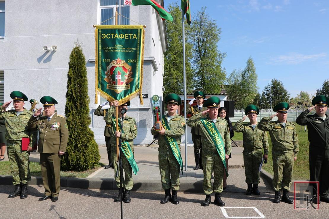 Торжественная передача эстафеты от Полоцкого пограничного отряда Сморгонской пограничной группе состоялась на плацу погранкомендатуры «Поставы». Здесь в ожидании гостей выстроились личный состав части, почётные гости и представители патриотического клуба СШ №4 имени В. Ф. Фронтова.