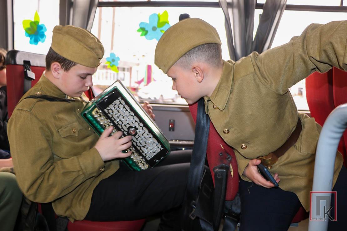 Заходжу ў салон — і адразу трапляю ў атмасферу свята: удзельнікі праекта пад акампанемент баяна пранікнёна зацягваюць «Расцветали яблони и груши». Франтавыя і пасляваенныя мелодыі будуць гучаць усю няблізкую дарогу. З энтузіязмам падхопяць словы вядомых песень і дунілавіцкія старшакласнікі, якія далучацца да пастаўчан па дарозе. Гледзячы на іх, бесклапотных і шчырых, увесь маршрут будзе ўсміхацца ганаровы госць «Цягніка Перамогі» — былы малалетні вязень, даўні сябар СШ №3 Рыгор Леснікаў. Кожнае слова гэтага жывога сведкі ваеннага ліхалецця вучні будуць лавіць з непадробным інтарэсам. Ён раскажа і пра гады, апаленыя вайной, і пра лёс сваёй сям’і, і пра мірнае жыццё. А галоўным запаветам стануць простыя, але такія мудрыя словы: «Цаніце і беражыце мір! Гэта самая вялікая каштоўнасць».