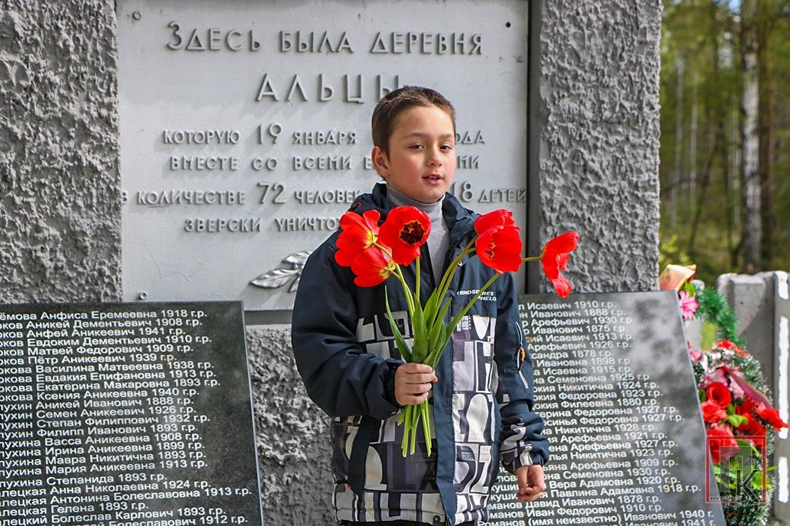 Такой жа кранальнай будзе і канцэртная праграма ля абеліска ў Альцах: вершы, песні, танцавальныя кампазіцыі, ускладанне жывых кветак. Не менш пранікнёна, чым школьнікі, выступяць і педагогі. Ідэйны натхняльнік праекта Алена Грывусевіч усю душу ўкладзе ў словы вядучага. Намеснік дырэктара па выхаваўчай рабоце Дунілавіцкай сярэдняй школы Вольга Андрэйчык не зможа стрымаць слёз, пераказваючы ўспаміны былой жыхаркі спаленай вёскі, якая цудам засталася жывой. Яе калега па трэцяй школе Таццяна Крук узгадае лёс Хатыні, раскажа гісторыю стварэння і аднаўлення гэтага агульнавядомага мемарыяльнага комплексу. І неаднойчы ў маёй памяці ўсплывуць словы Прэзідэнта, што «патрыёта можа выхаваць толькі патрыёт».