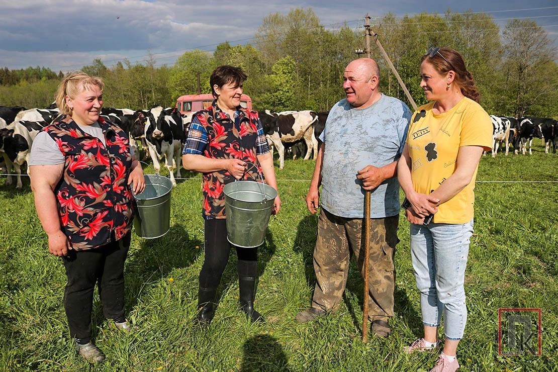 Першыя дні ў полі заўсёды няпростыя. Таму на пашы на вячэрняй дойцы былі як аператары машыннага даення, пастухі, загадчык фермы Леанід Брадняк, так і галоўныя заатэхнік Алена Шалаева і ветурач Марыя Катко.