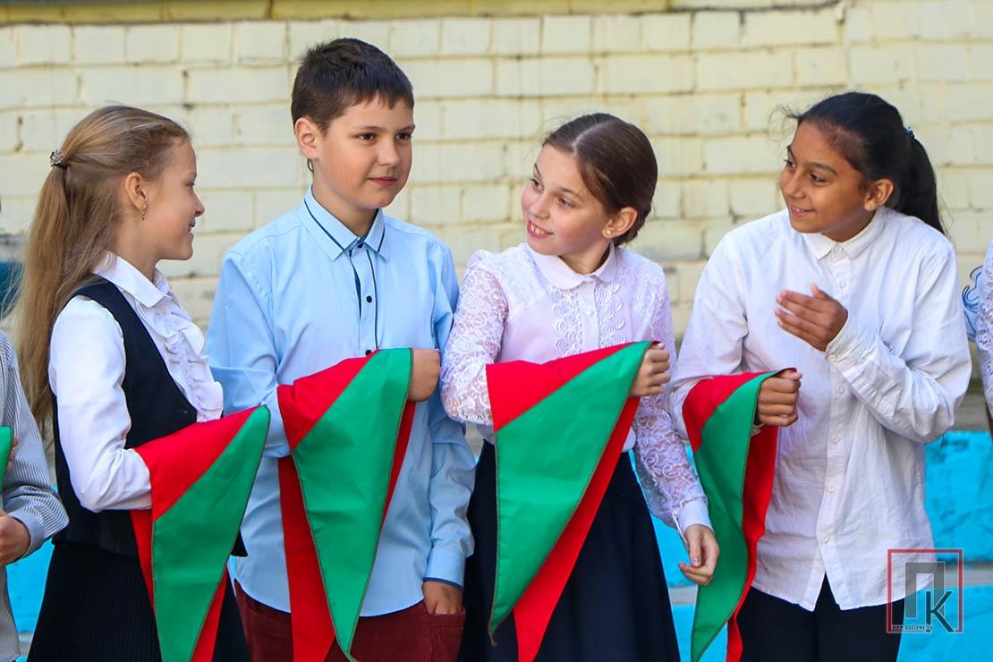 Впрочем, чувство патриотизма на торжественной линейке вызывало всё: начиная от развевающегося Государственного флага и совместного исполнения гимна и заканчивая красно-зелёным реквизитом для музыкальных номеров. Удачно «вклинилась» в сценарий праздника и сама жизнь: в момент церемонии над школой парили символы нашей страны — белокрылые аисты. Взоры детей нет-нет да и устремлялись в безоблачное небо, чтобы понаблюдать за грациозными птицами.