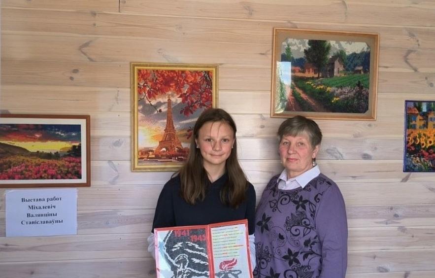 Недавно стена фойе отделения заиграла необычными красками — на ней расположились работы нашей посетительницы Валентины Михалевич и её внучки Варвары — ученицы 6 класса местной школы. Поле из ярких подсолнухов, великолепная Эйфелева башня, изумительный закат солнца, просёлочная дорога, весёлый снеговик, милый котик, величавый снегирь на ветке, игривая лошадь выполнены в технике алмазной вышивки. Это одно из современных направлений в рукоделии.