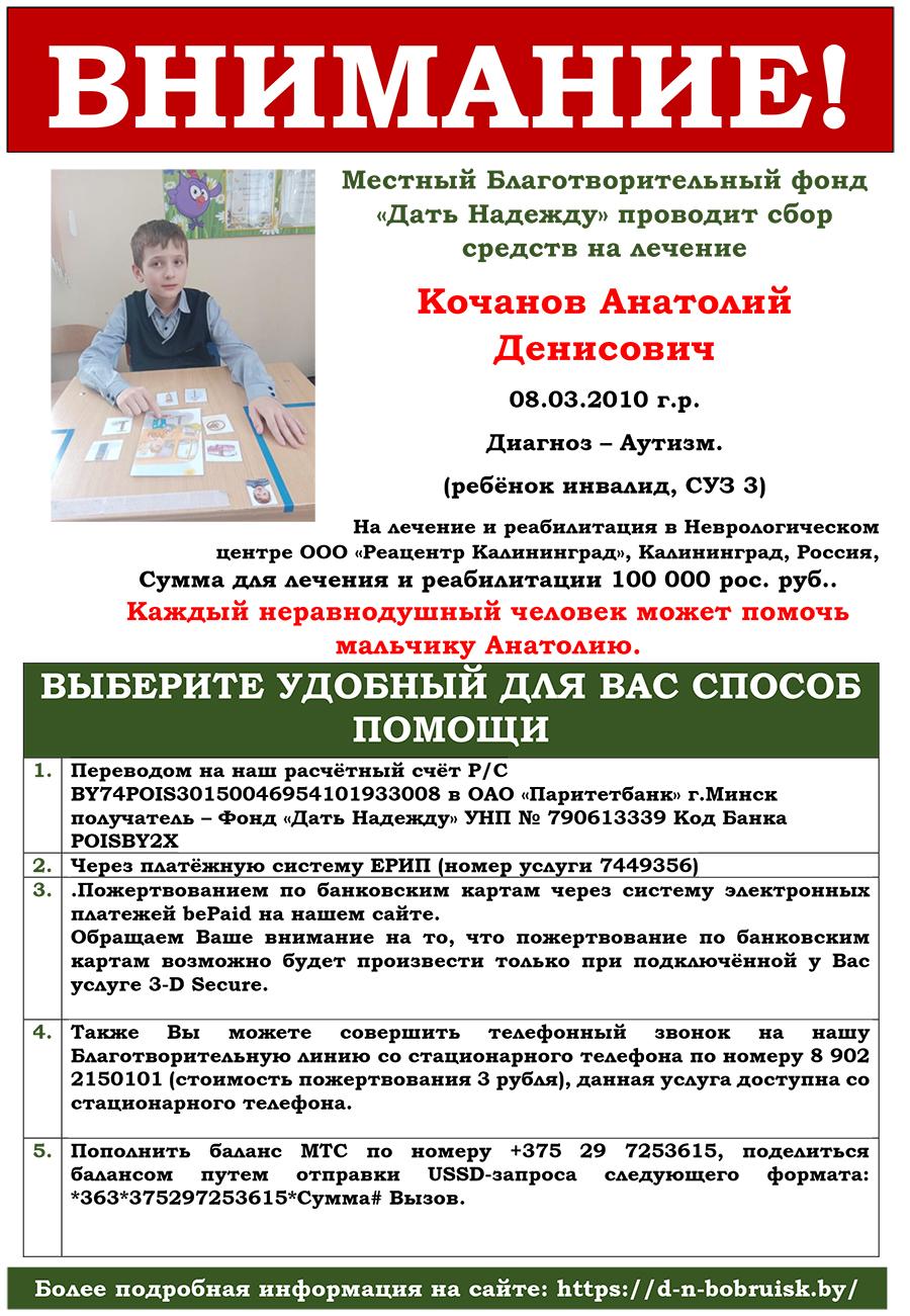 Анатолию Кочанову нужна помощь! Сбор средств на лечение