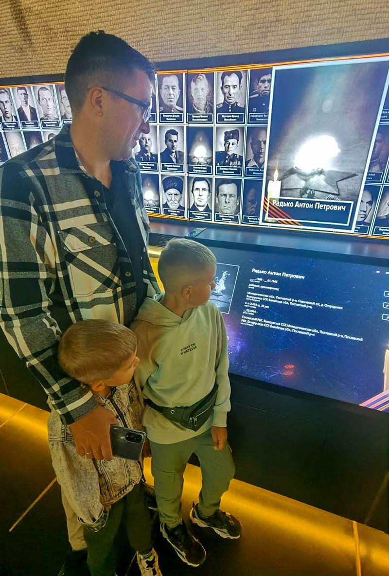 — Калі прачытаў, мурашкі пабеглі па целе, — працягваў Ягор. — Паклікаў сыноў Данілу і Ціхана і коратка расказаў гісторыю сям’і. Сеўшы ў машыну, хлопцы задавалі шмат пытанняў. І ў Санкт-Пецярбургу мы не раз вярталіся да гэтай тэмы. Увогуле, музей вельмі ўразіў. У першай зале дакладна можна ўявіць, як немцы бамбілі Беларусь: праз празрыстую падлогу бачныя дзіцячыя цацкі, бітае шкло. Пагранічны слуп сімвалізуе Брэст, які першым прыняў на сябе ўдар ворага. Тут жа мост, што вядзе да варот Брэсцкай крэпасці. А блакадны Ленінград?! Адчуць тую атмасферу голаду, холаду дапамагае неверагодны холад у зале.