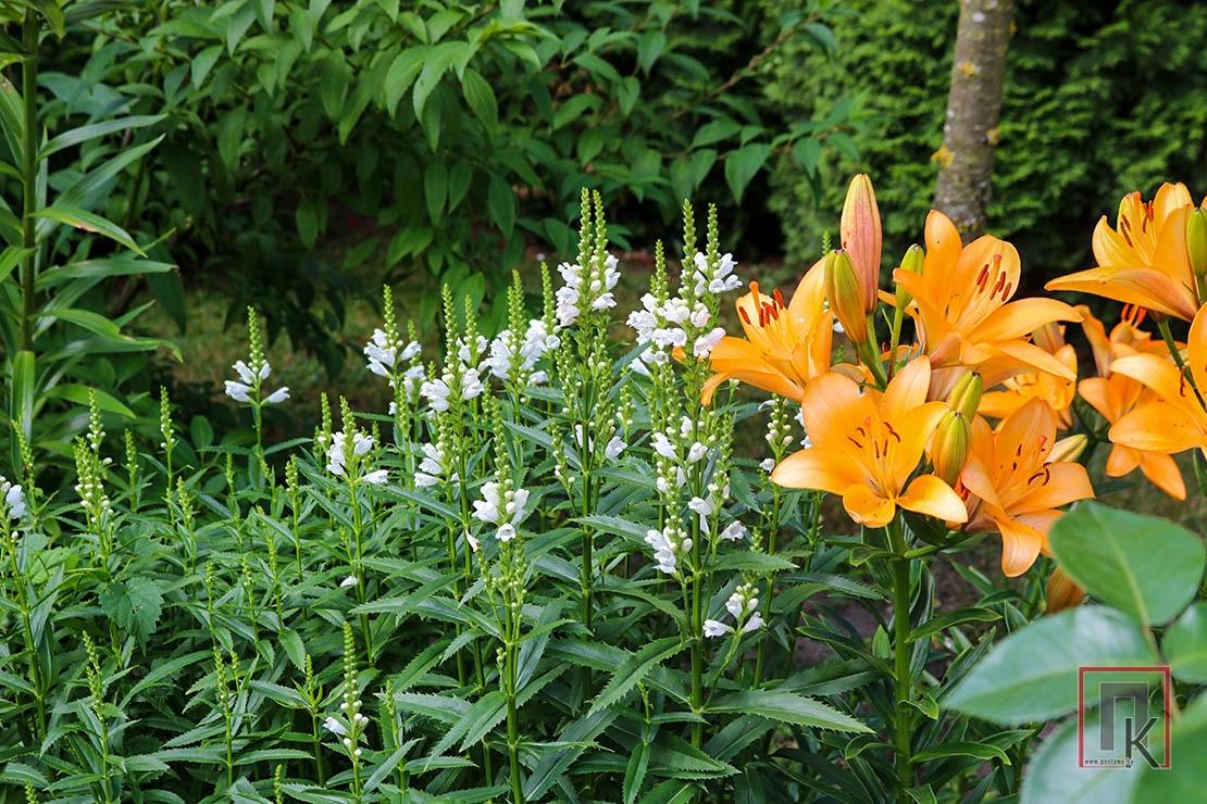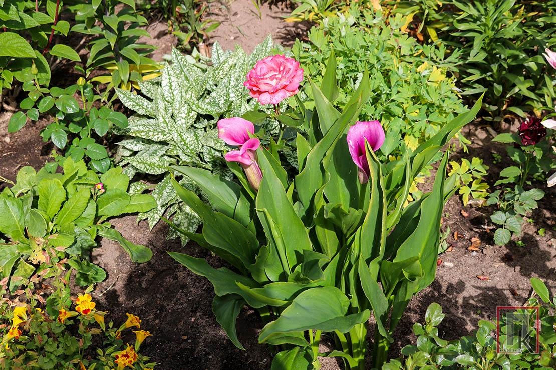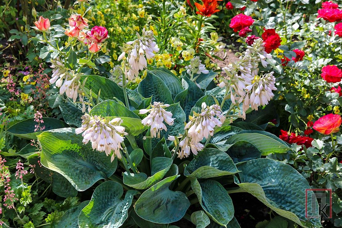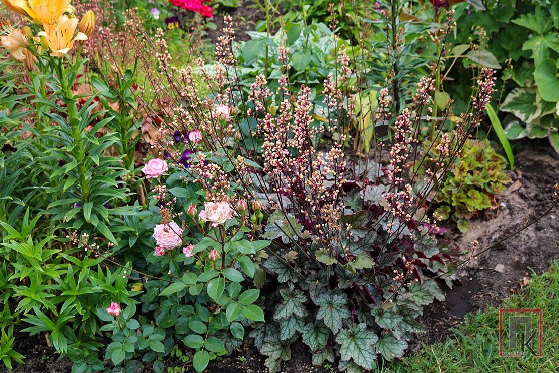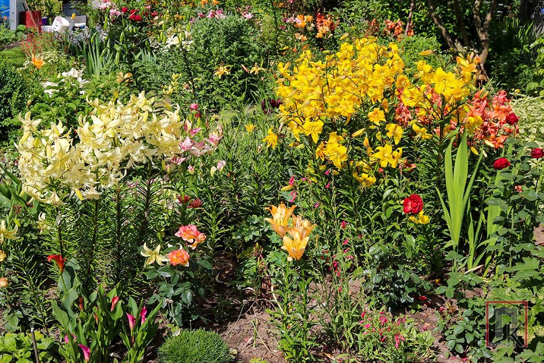 Ходзім з гаспадарамі ад клумбы да клумбы, і вочы разбягаюцца ад яркага шматколернага хараства. Ружы, гартэнзіі, лілеі, хрызантэмы, вяйгела, лімоннік, гейхера, калы, хосты, дэкаратыўныя злакі, эхінацэя… Пералічыць усе нерэальна, бо нават сама Вольга не памятае ўсіх назваў кветак, якія вырошчвае.