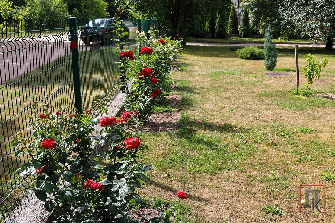 Прыдамавая тэрыторыя займае ажно 27 сотак. Тут знаходзіцца зарыбленая сажалка 20х15 метраў. На астатняй плошчы — невялікі агарод, газоны, пладовыя дрэвы і кусты, незлічоныя кветнікі. Адных руж толькі больш за 100 кустоў.