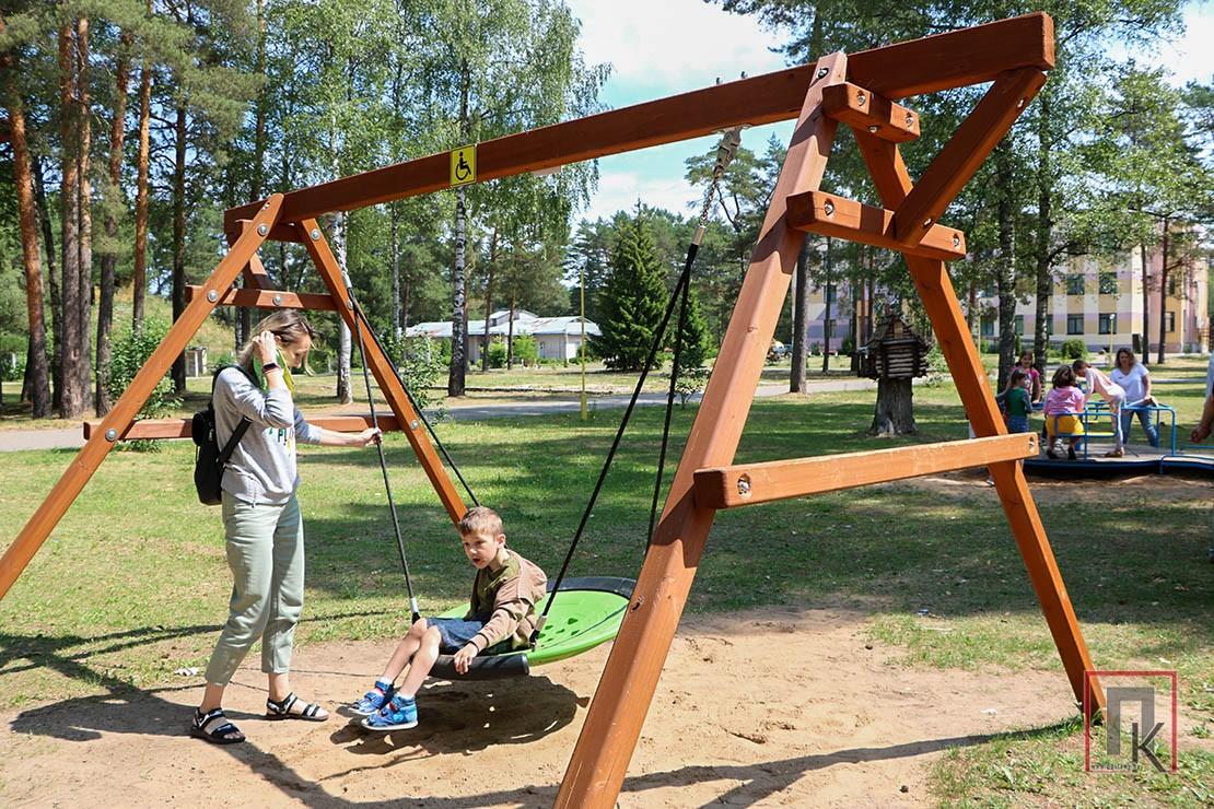 А на днях игровая площадка для детей младшего возраста дополнилась новыми элементами. Досуг ребят, проходящих здесь оздоровление и реабилитацию, разнообразили карусель с пандусом, качели-гнездо, качели-балансир, качалка на пружине «Коник» и песочница для детей-колясочников. Всё оборудование содержит элементы инклюзии и рассчитано на совместные игры детворы вне зависимости от имеющихся у них диагнозов.