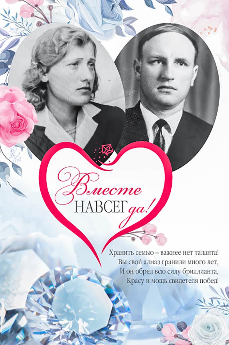 І вось пачынаецца ўрачыстасць. Пад гукі марша Мендэльсона старшыня Казлоўшчынскага сельскага Савета Ірына Кукоўская рэгіструе брыльянтавы шлюб, уручае пары пасведчанне, цёпла віншуе. Адзін за другім бяруць слова госці, і віншаванні множацца. Прозай, вершаваныя, песенныя — усе аднолькава шчырыя.