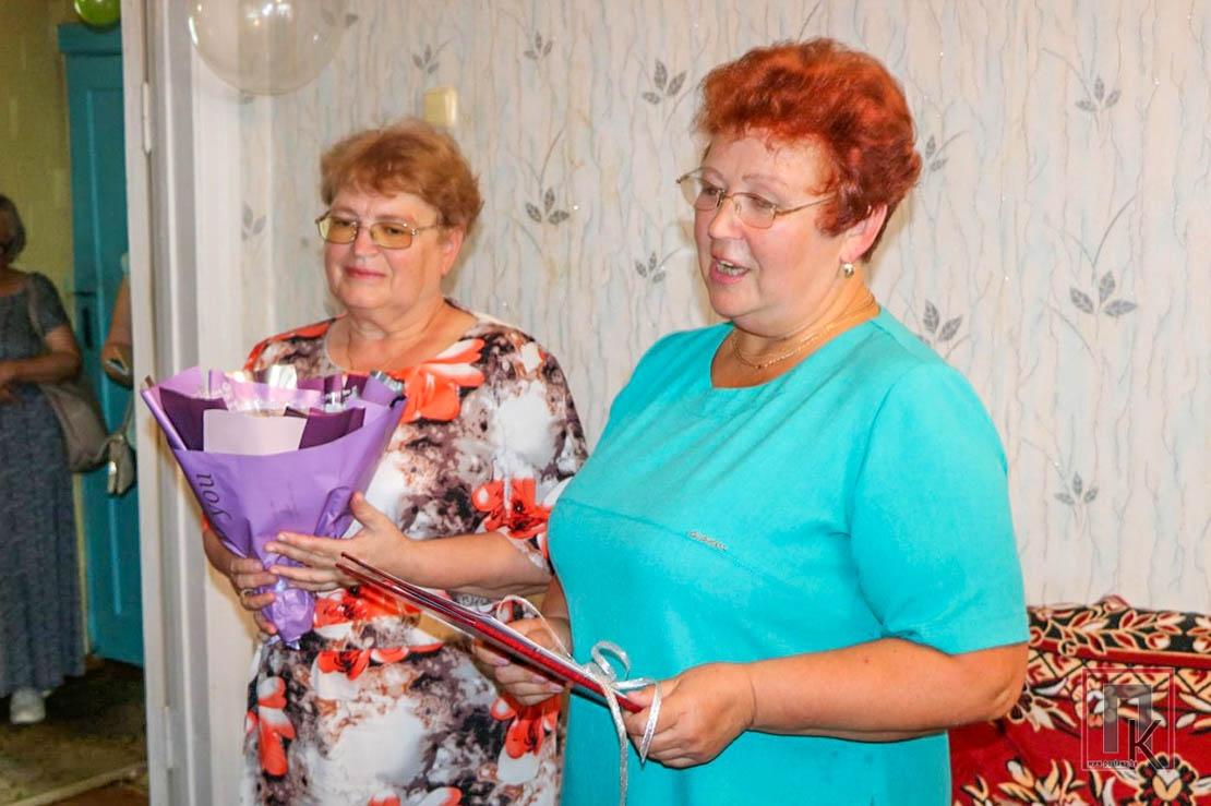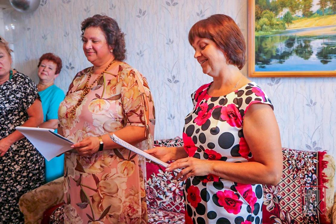 Старшыня раённага савета ветэранаў Ганна Літвіновіч зачытвае прывітальны адрас за подпісам старшыні райвыканкама Сяргея Чэпіка і старшыні райсавета дэпутатаў Пятра Курто. «Вы прайшлі вялікі і слаўны шлях па жыццёвай дарозе, якая непарыўна звязана з Пастаўшчынай, — гаворыцца ў ім. — Дзякуючы мудрасці, адказнасці і адданасці, а яшчэ дабрыні, шчодрасці душы, прыстойнасці змаглі стварыць выдатную сям’ю са сваімі традыцыямі. Дзялілі радасць і гора, жылі каханнем і верай адно ў аднаго, і гэта вера дапамагла перажыць усе нягоды».