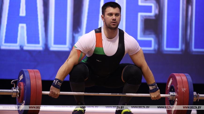В первом виде программы — соревнованиях мужчин в весовой категории 102 кг — белорус Евгений Тихонцов стал серебряным призером. В сумме двоеборья чемпион мира и Европы набрал 391 кг (рывок — 176 кг, толчок — 215 кг). Тихонцов уступил всего один килограмм победителю россиянину Георгию Купцову — 392 кг (175+217).