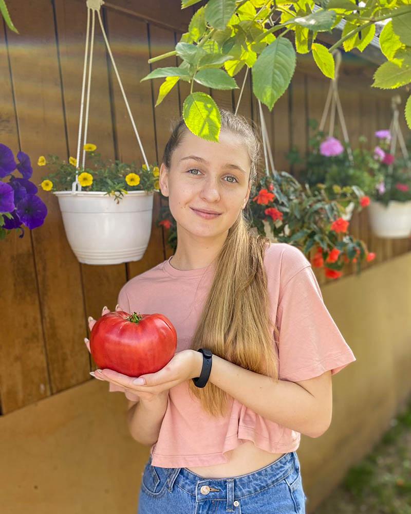 А вот помидор-великан, который весит 848 граммов! Вырос он в парнике трудолюбивой хозяйки, цветочницы Регины Можай, проживающей по улице Октябрьской в райцентре (о ней «ПК» писал чуть ранее). Женщина не один год выращивает помидоры: в её теплице их аж 30 видов!