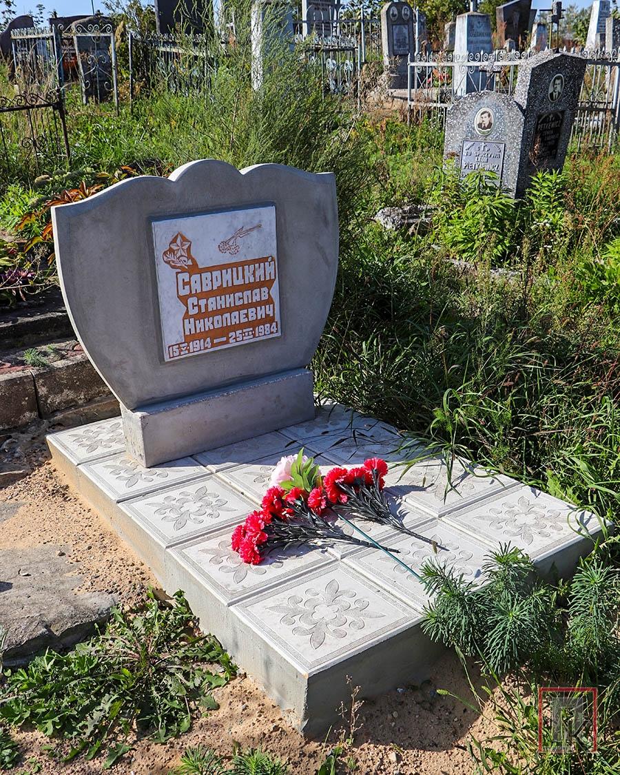 — На городском кладбище по улице Тихой у меня похоронена бабушка, — начал разговор Александр Тадеушевич. — Когда на Радуницу пришёл на её могилку, случайно заметил развалившийся памятник. Взгляд упал на надпись «Саврицкий Станислав Николаевич. 15.05.1914—25.02.1984». Я сразу же вспомнил этого человека — он был ветераном Великой Отечественной войны, персональным пенсионером (к ним причисляли за особые заслуги перед государством). Знал Станислава Николаевича лично: он был директором школы в деревне Большие Споры, в которой я учился до 5 класса и в которой работала учительницей моя мама. Символично, что он, выживший в войне, детям преподавал историю.