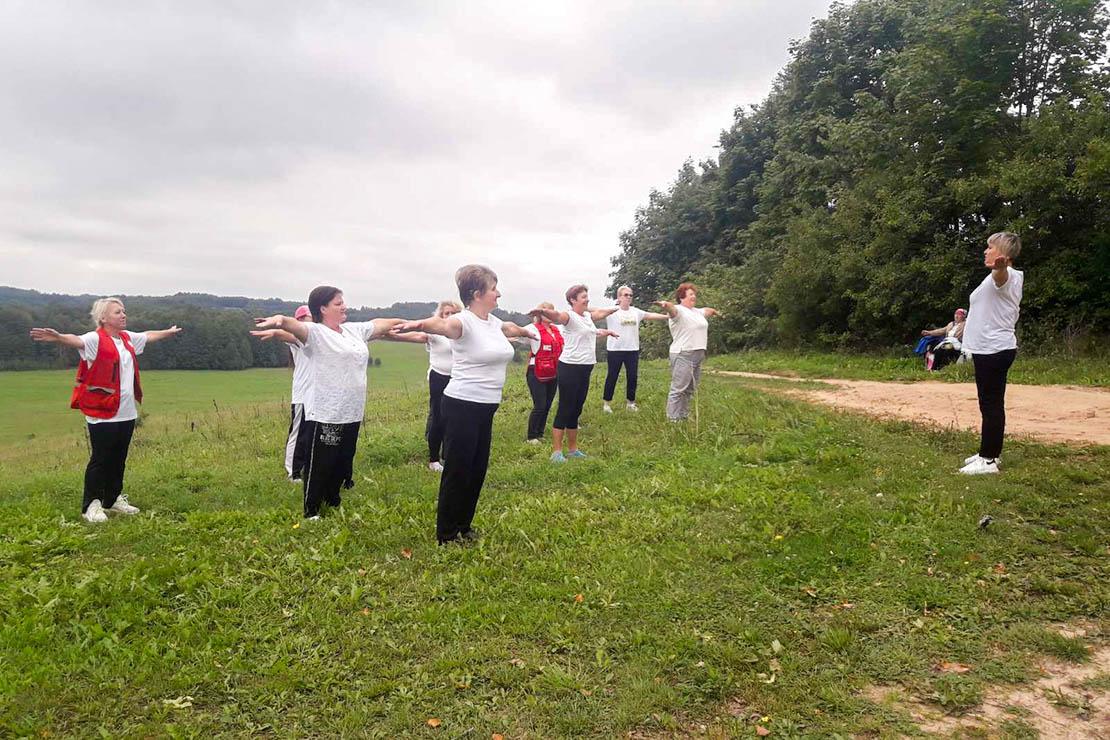 — Наш пеший поход мы назвали «Восхождение на гору здоровья», — рассказывала инициатор и организатор мероприятия Оксана Дробышева. — Реализовать задуманное удалось благодаря поддержке Поставской центральной районной больницы. Плодотворность нашего сотрудничества уже проверена временем. Фельдшер-валеолог ЦРБ Юлия Дисько приходит в наше отделение ещё с начала 2023 года и дважды в неделю проводит занятия по ЛФК, профилактические беседы, другие мероприятия. Так мы участвуем в государственном проекте «Здоровые города и посёлки», а также реализации собственной программы «Физическая активность — путь к долголетию».