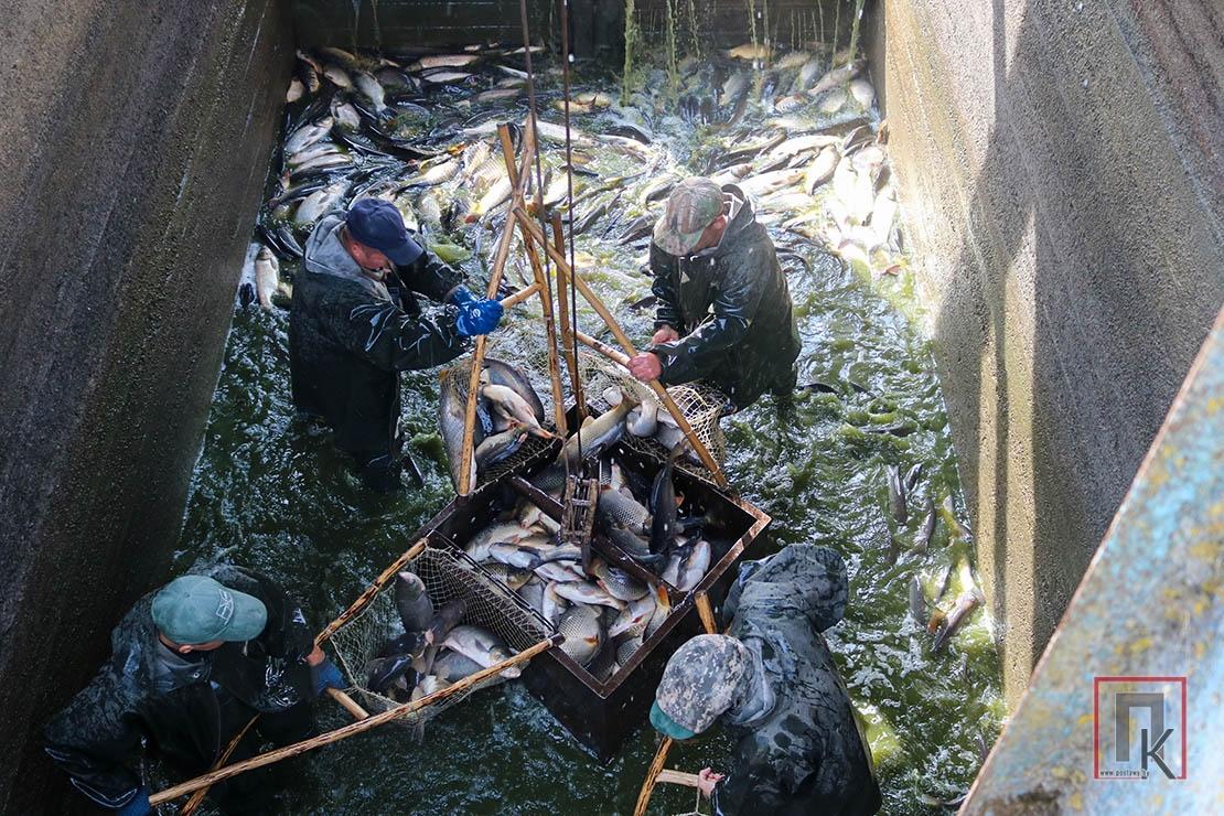 Тут чакаюць рабочыя, што будуць адбіраць рыбу не толькі па відах, але і па вазе. Па спецыяльным рукаве рыба з бочкі трапляе на сартавальню. Таварная сартуецца на сярэднюю, буйную, адборную і адборна-элітную. Частку яе адразу павязуць на рэалізацыю ў райцэнтр, Віцебск, Полацк, Наваполацк і іншыя гарады, частку выгрузяць у зімавальныя сажалкі, адкуль будуць зноў па меры неабходнасці вылоўліваць і прадаваць. У сажалкі на дарошчванне адпраўляецца і маладняк вагой да 300 грамаў. Па латку з вадой ён загружаецца ў кантэйнер, адтуль — у бочку аўтамабіля і адвозіцца да зімавальнай сажалкі.