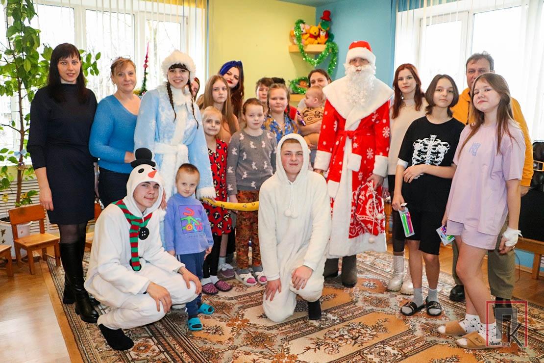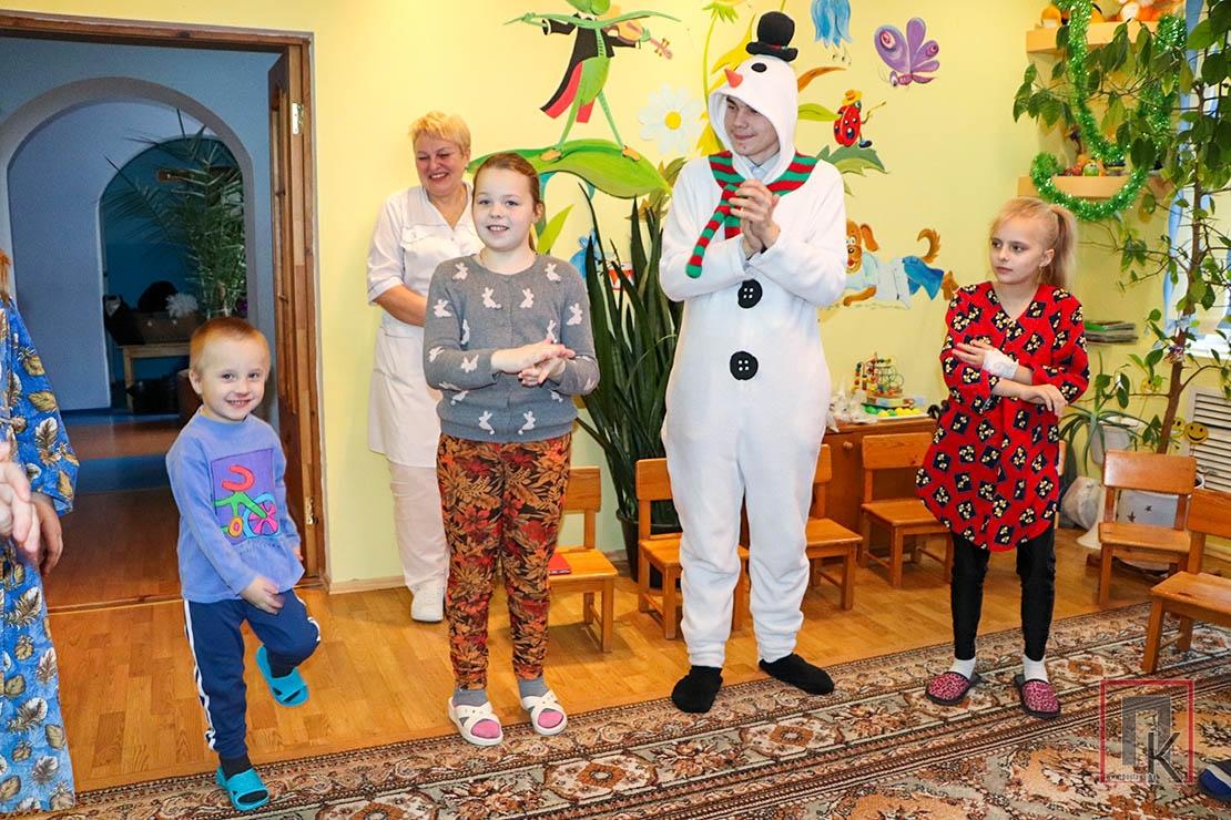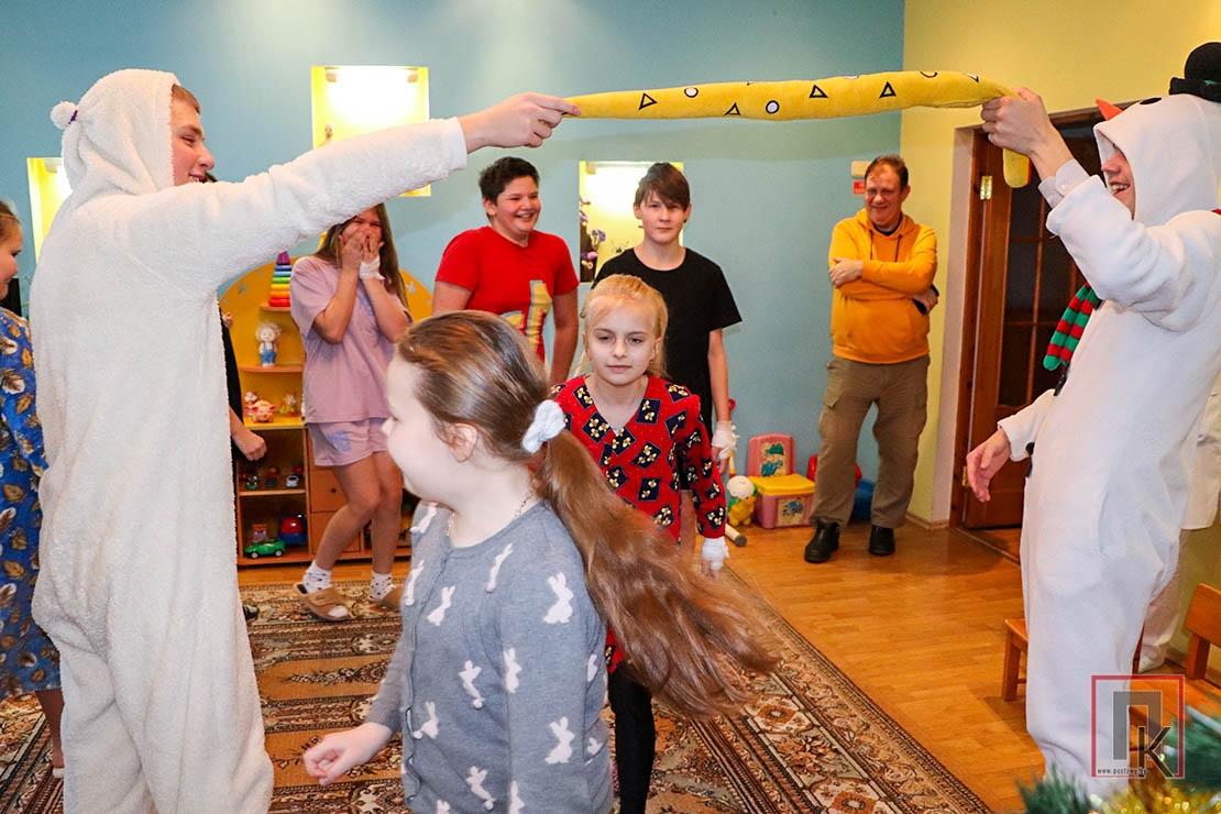 Уже на следующий день те же юные артисты из четвёртой школы отправились в Социально-педагогический центр Поставского района, чтобы поздравить с новогодними праздниками и его воспитанников. Компанию им составили сотрудники пограничной комендатуры «Поставы».