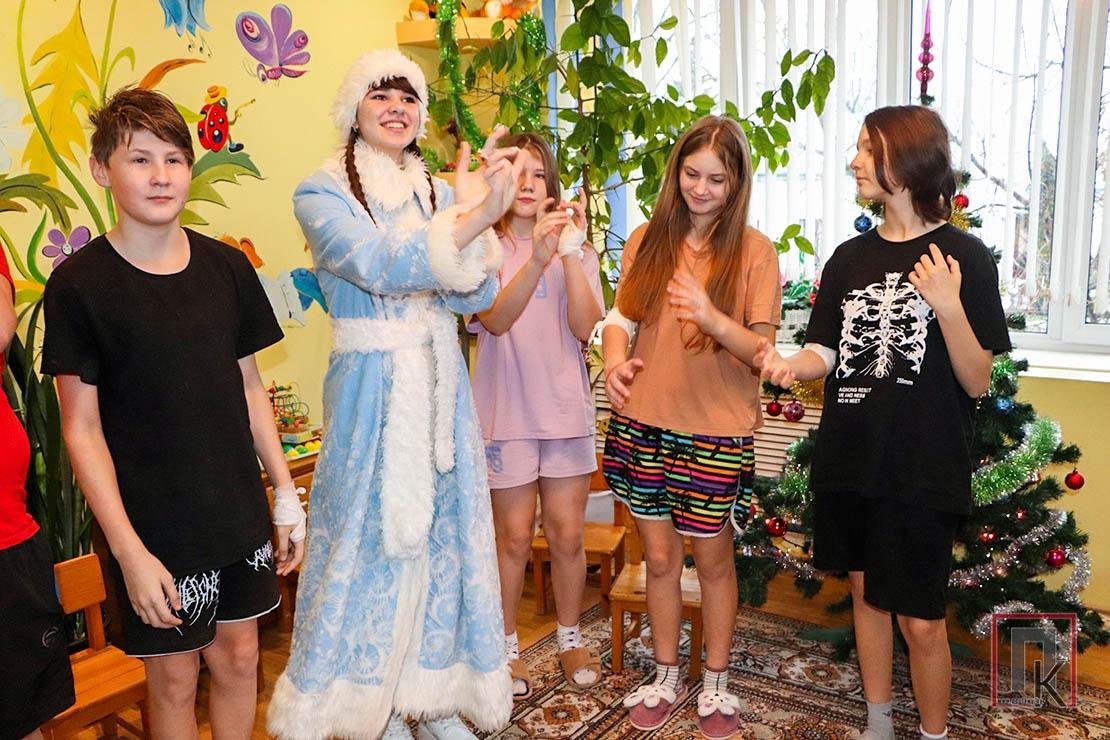 Около десятка мальчишек и девчонок разного возраста пришли в тот день в игровую комнату, которую уже украшала нарядная ёлка. Школьники, переодетые как в нечисть, так и в добрых персонажей, водили с детьми хороводы, загадывали им загадки, проводили весёлые конкурсы и дарили свои подарки.