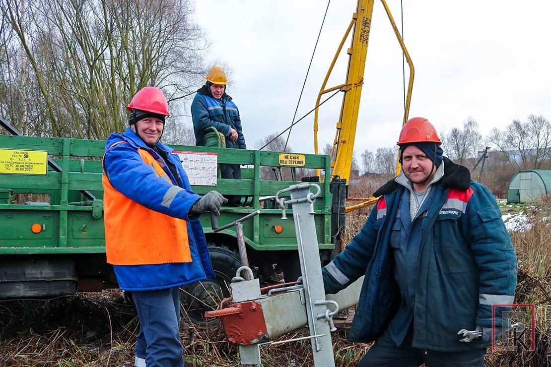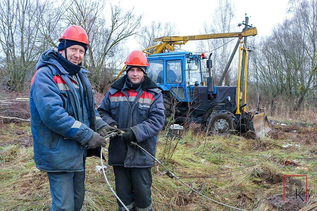 У панядзелак з начальнікам РЭС Мікалаем Ожэлем накіроўваемся на вуліцу Крупскай у райцэнтры. Пад нагамі хлюпае гразь, імжыць дождж, хочацца захінуцца куды-небудзь ад калючага ветру. А брыгады майстроў Юрыя Чарняўскага і Сяргея Мышко вядуць рэканструкцыю лініі электраперадачы. Працуе бурыльная ўстаноўка. Замест старых апор энергетыкі ўстанаўліваюць новыя, мяняюць правады на ізаляваныя.
