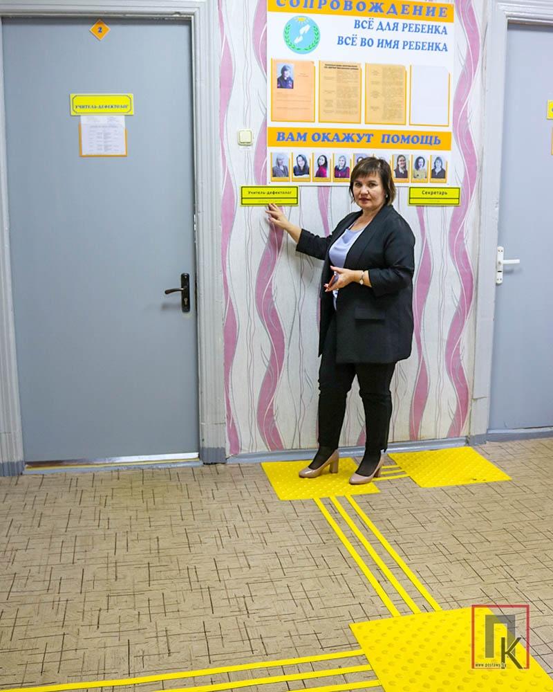 — На выдзеленыя на стварэнне безбар’ернага асяроддзя грошы мы паклалі на падлозе ўнутры памяшкання тактыльную плітку і накіравальныя элементы, устанавілі на ўваходзе і выхадзе з цэнтра моўныя інфарматары і мнемасхемы са шрыфтам Брайля для людзей з парушэннем зроку, на ганку — кнопку выкліку персаналу і рэжым работы ўстановы, — расказвала яе дырэктар Іна Краўчук. — Гэта толькі палова таго, што неабходна зрабіць. Зараз ідзе працэдура закупкі поручняў у санвузел для дзяцей-інвалідаў. Да канца года павінны адрамантаваць пляцоўку перад уваходам і пандус, дзе таксама будуць устаноўлены новыя поручні.