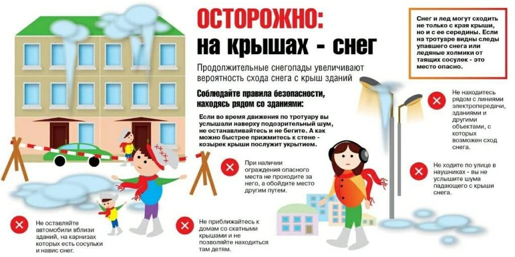 - Во время периода схода снега, наледи с крыш зданий старайтесь выбирать маршрут в стороне от зданий.