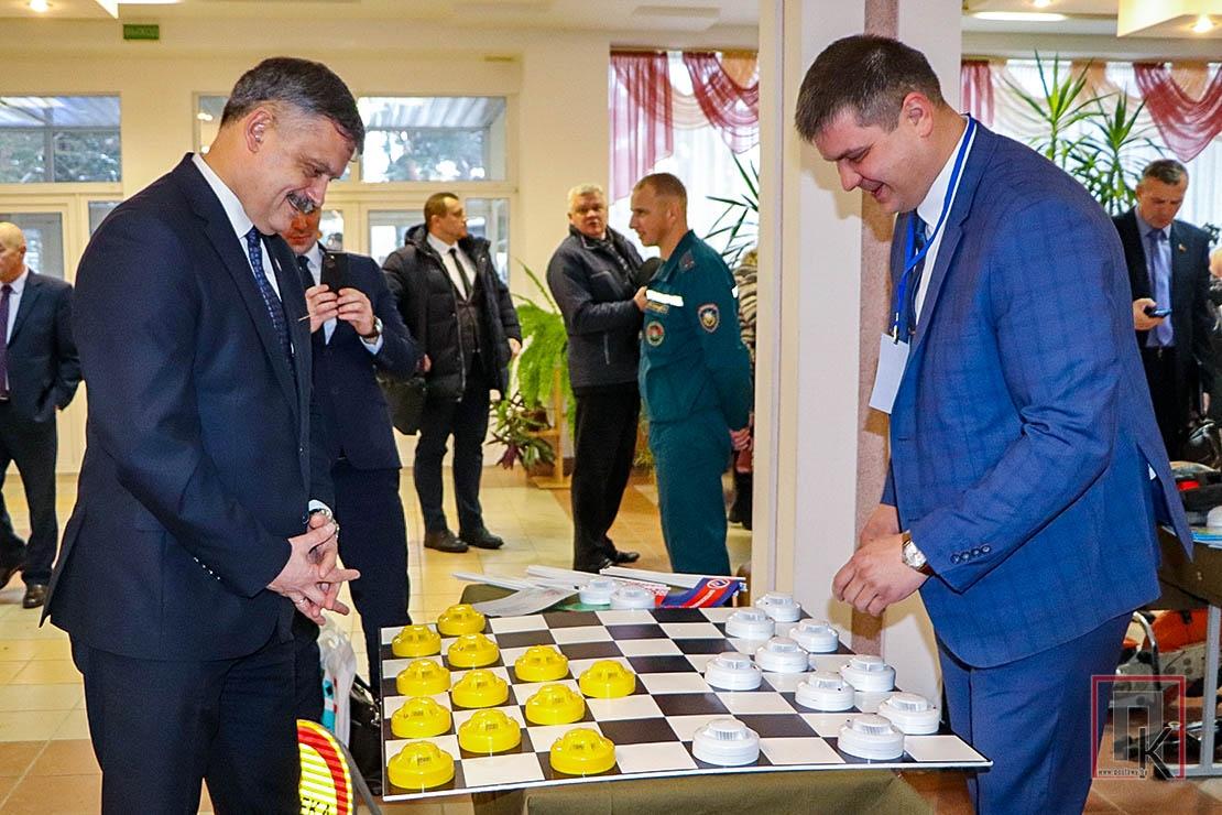 Министр спорта и туризма и почти сотня специалистов, работающих в данной отрасли, перед приездом на Поставщину побывали на различных объектах Миорского и Глубокского районов. Знакомство с работой спортивных учреждений нашего региона было организовано утром 8 декабря. Гости посетили местную детско-юношескую спортивную школу и Поставский физкультурно-спортивный клуб. С докладами выступили их руководители Эрик Костюченко и Павел Вавинский, а также начальник отдела спорта и туризма райисполкома Вячеслав Врублевский. Они рассказали о проводимой работе по выполнению требований Директивы Президента Республики Беларусь №1 «О мерах по укреплению общественной безопасности и дисциплины».