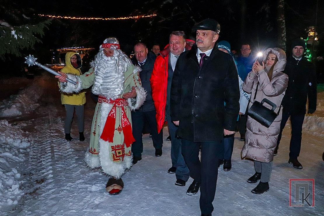 Высоких гостей в Поставском районе встречали вечером 7 декабря. Министр, его первый заместитель Александр Дорохович, начальник управления спорта и туризма Витебского облисполкома Василий Захаревич, а также другие участники семинара прибыли на спортивно-туристический комплекс «Озёрки», где их встречал глава района Сергей Чепик. Экскурсию по сказочно заснеженному объекту провели его хозяева — Зюзя Поозерский и Дед Бай. Гости прошлись по тропе желаний, отгадали весёлые загадки Бабы Яги, выглянувшей из своей избушки, посетили выставку-продажу сувенирной продукции Дома ремёсел «Старый млын», поучаствовали в развлекательной программе, подготовленной поставскими работниками культуры. Но главным событием того вечера стало открытие спального корпуса.