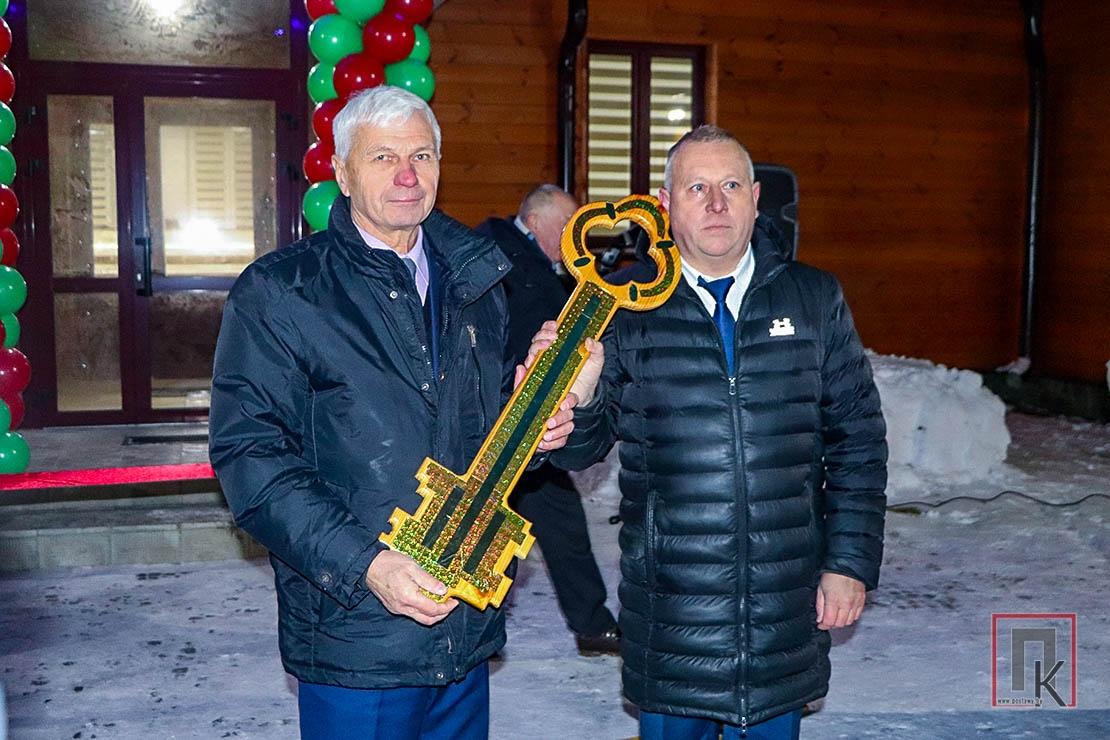 Сергей Васильевич также поблагодарил строителей КСУП «Рассвет Поставский», которые на протяжении длительного времени трудились на объекте и смогли завершить работы до Нового года. Затем директор строительной организации Альфред Малец вручил символический ключ от спального корпуса начальнику отдела спорта и туризма райисполкома Вячеславу Врублевскому и вместе с почётными гостями перерезал перед зданием красную ленту — объект торжественно открыт!
