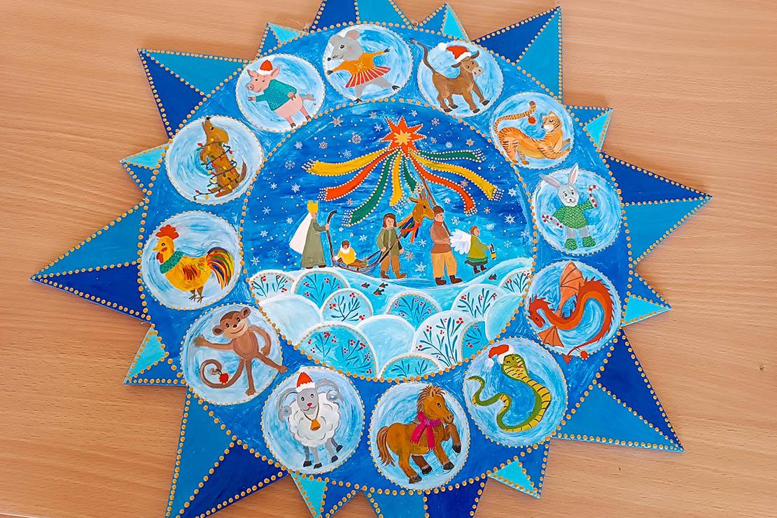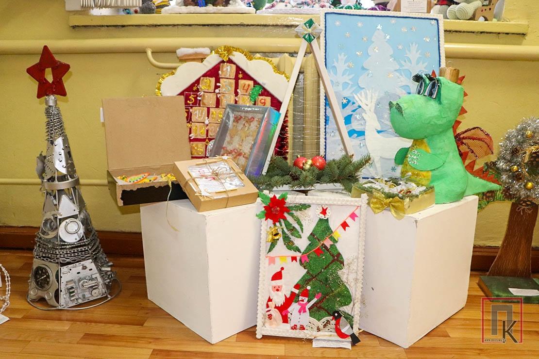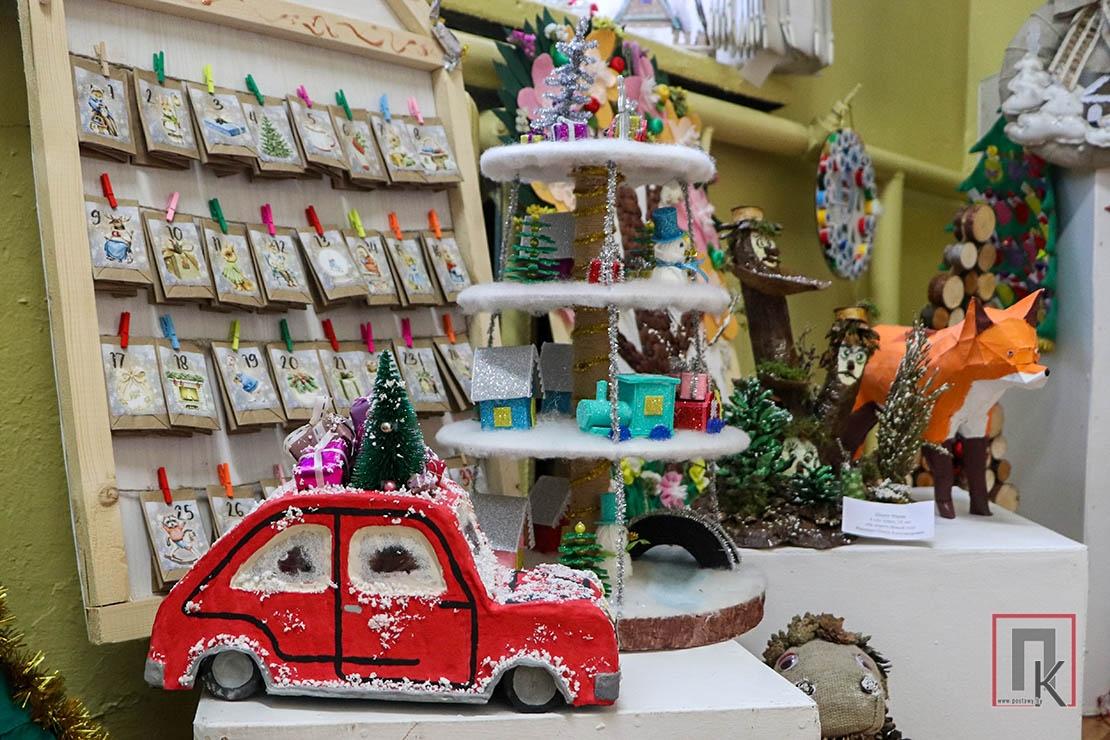 Полёт детского творчества здесь действительно впечатляет. Привлекают внимание и восхищают креативные адвент-календари, необычные ёлки и сувениры, забавные животные и снеговики, оригинальные поделки и картины… Как оказалось, практически всё это великолепие создано учащимися для различных творческих соревнований.