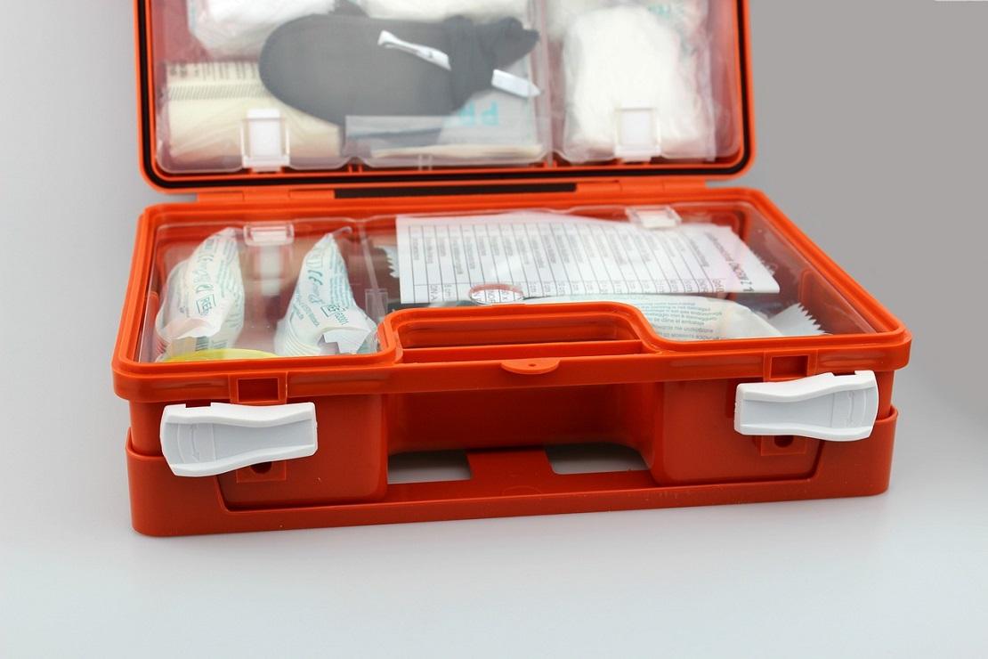 В автомобильной аптечке — 12 наименований: бинт медицинский стерильный двух размеров, жгут кровоостанавливающий типа Эсмарха, бактерицидный лейкопластырь, атравматические ножницы для резки бинта и одежды, изотермическое одеяло, гипотермический охлаждающий пакет и перевязочный медицинский индивидуальный, перекись водорода 3%, медицинские нестерильные перчатки, марлевая медицинская стерильная салфетка и салфетка для стимуляции дыхания (с пропиткой) или аммиак раствор для наружного применения.
