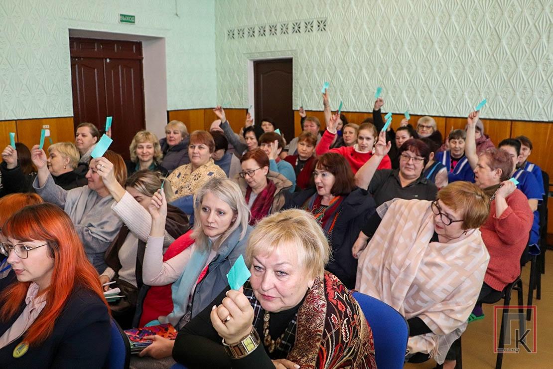 С отчётными докладами о работе за 5-летний период с 2019 по 2024 год выступили председатель первичной профорганизации первой школы Алла Демчук и председатель ревизионной комиссии ППО Галина Ижмайлович. Была дана оценка работе по защите трудовых и социально-экономических прав работающих, эффективности общественного контроля по охране труда и многим другим направлениям.