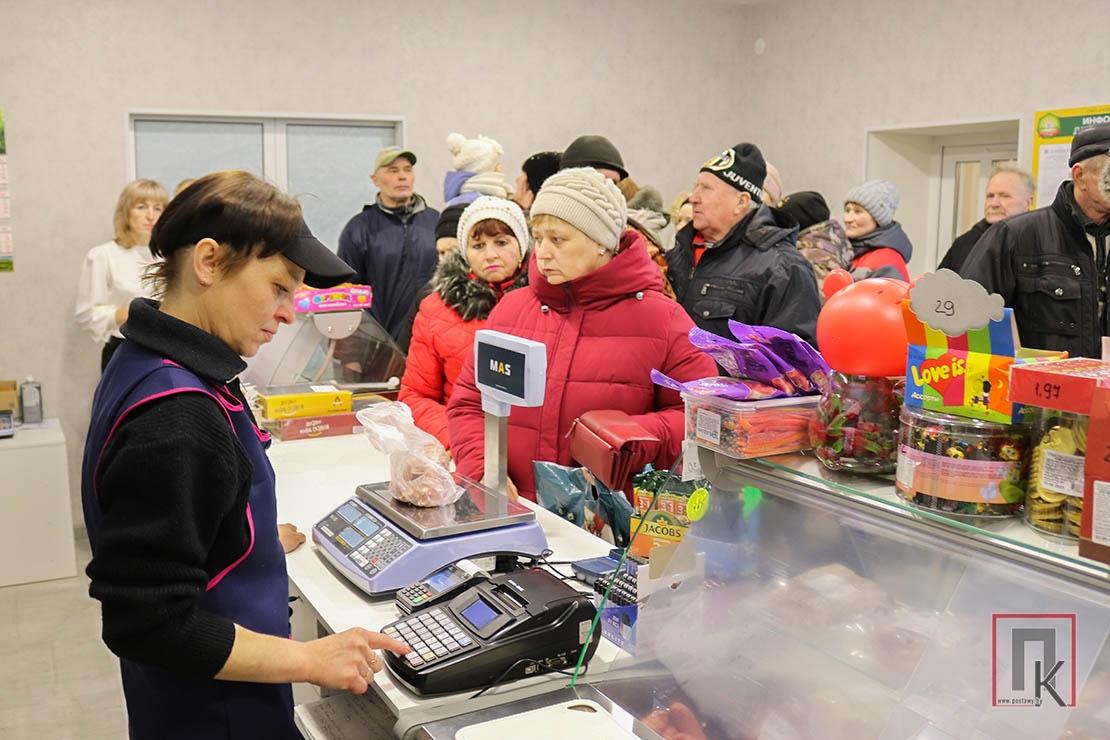 У першыя гадзіны адкрыцця магазіна гандаль ішоў бойка. Пакупнікам, здаецца, хацелася купіць усё, чаго няма ў магазіне Пастаўскага філіяла аблспажыўтаварыства. Работнікі бухгалтэрыі ААТ «Навасёлкі-Лучай» тут жа прапаноўвалі дэгустацыю прадукцыі ўласнай вытворчасці. Пакаштаваўшы сала, каўбас, некаторыя станавіліся ў чаргу зноў, каб дапоўніць асартымент набытага.