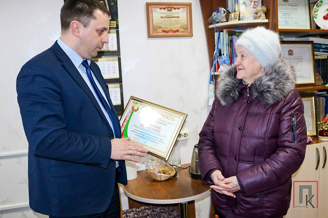 В тот день она принимала поздравления в районном совете ветеранов. Стройная, нарядная, на высоких каблучках, с искрящимися радостью глазами. Заместитель председателя райисполкома Станислав Чимбург вручил имениннице Благодарность главы района, тепло поздравил с юбилеем, пожелал всегда оставаться красивой, молодой, активной.