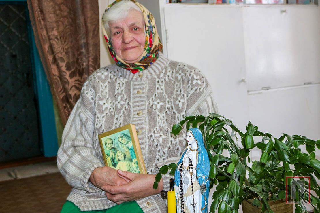 — Двойчы звалілася, — расказвала з усмешкай. — Але Божанька падкладваў мне падушку — нічога не зламала. Змалку жыву ў веры, і мой муж таксама быў каталіком. Шлюб мы з ім бралі ажно ў Гадуцішках, бо ў нашых мясцінах усе касцёлы пазакрывалі.