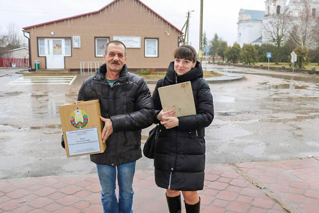 Члены избирательной комиссии избирательного участка №10 Павел Литвин и Наталья Будько только вернулись с голосования на дому. Они побывали в Свидно, Переслеге, Петровичах, Мальковичах.