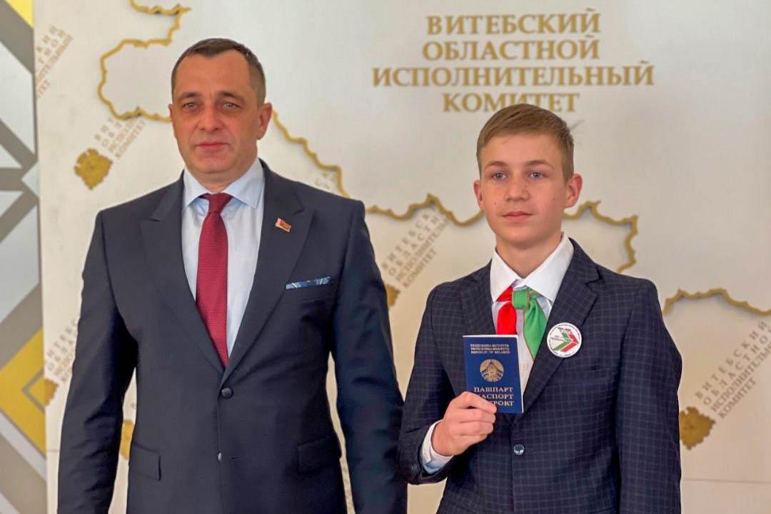 Учащемуся СШ №2 им. Н. М. Осененко Максиму Летко в этот день посчастливилось свой первый документ получить в Витебске из рук председателя облисполкома Александра Субботина. Своими впечатлениями парень поделился с «ПК».