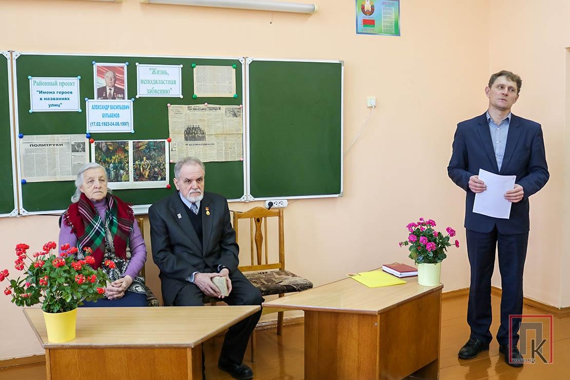 Васілій Аляксандравіч прыгадаў некаторыя моманты з біяграфіі роднага чалавека, якія яшчэ больш раскрылі яго асобу, пракаменціраваў фотаздымкі, што дэманстраваліся на экране мультыборда. А на завяршэнне свайго выступлення падарыў школе кніжку, якая была інструкцыяй для салдат Чырвонай Арміі і якой бацька карыстаўся, выкладаючы вучням дапрызыўную падрыхтоўку. Уласнымі ўспамінамі пра Аляксандра Бульбянова падзялілася і Леанарда Навой.