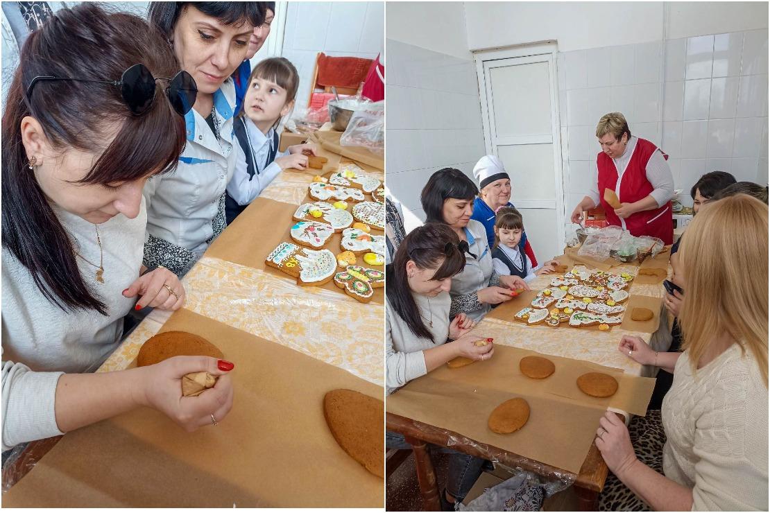 Пряники различных форм для мастер-класса испекли заранее. Для этого работники хлебозавода приложили творческие усилия и смекалку: самостоятельно разработали шаблоны, вырезали их из картона, а затем по готовым эскизам придали тесту нужные формы. Декоративной росписи ожидали курочки, зайчики, яйца, грибочки, бабочки и котики. Разноцветную глазурь из сахарной пудры, белка и пищевого красителя изготовила и разлила по специальным кулёчкам профессиональный мастер-кондитер, завоевавшая серебряную медаль на Всемирной кулинарной олимпиаде в Германии (2016 г.) Светлана Карандашова. Она же и поделилась секретами и особенностями росписи пряников с участниками мастер-класса, которых было 8 человек. Женщина работает в кондитерском цеху №1 Поставского хлебозавода. Именно там и прошло увлекательное мероприятие.