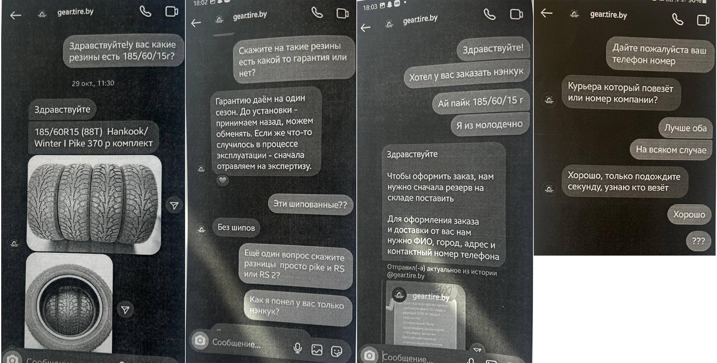 Супруги искали зимние шины в социальных сетях. Интернет-магазин «gear.tire.by» предлагал приобрести 4 шины за подозрительно небольшую сумму – 370 рублей.