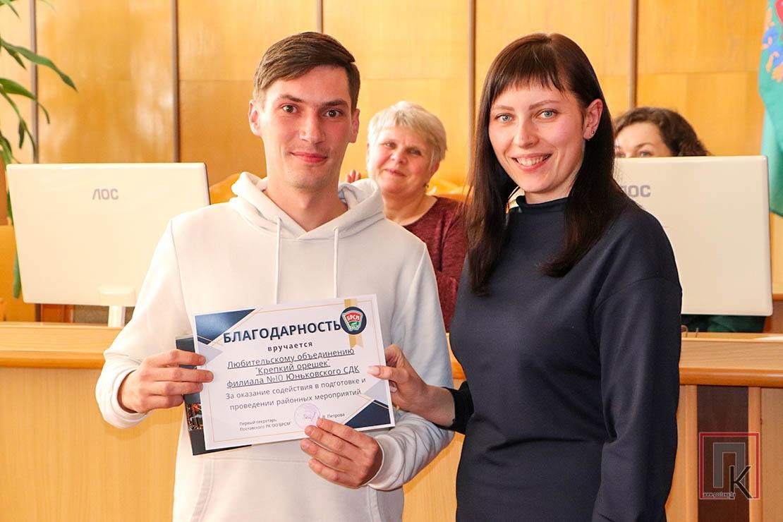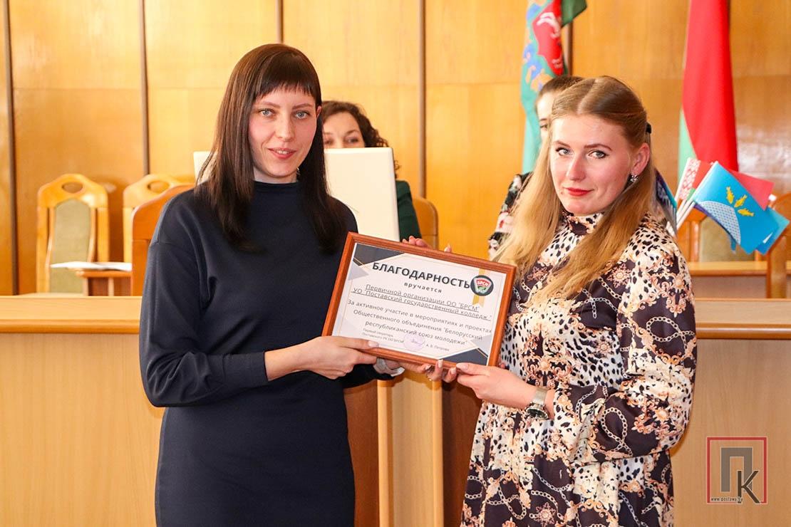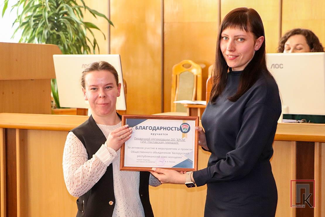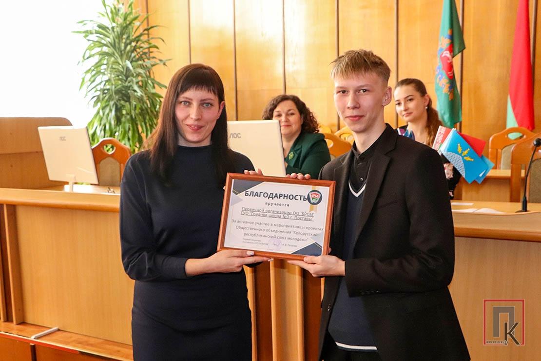 В этот день ряды общественного объединения пополнились яркими и амбициозными молодыми людьми: 15 учащимся СШ №3 торжественно вручили членские билеты. В ходе мероприятия активисты молодёжного движения СШ №1 и СШ №4 им. В. Ф. Фронтова получили заслуженные награды за вклад в развитие молодёжного движения. Их заслужили Мария Гурская, Александр Вирбал, Анна Лозикевич, Анастасия Райчёнок, Екатерина Трофимова, Юлиана Панавас и Вероника Зубкевич. Благодарностями отмечены первичные профсоюзные организации гимназии, СШ №3 и Поставского государственного колледжа, а также любительское объединение «Крепкий орешек» Юньковского СДК.