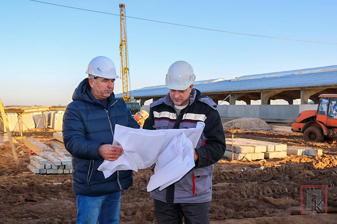 Будаўнічая пляцоўка нагадвае мурашнік: тут працуе розная тэхніка, кожны дзень шчыруюць да 50 чалавек. Практычна на кожным будынку аб’екта кіпіць работа: адны ўстаўляюць вокны ў цялятніку-прафілакторыі, другія закладваюць цэглай тарцы кароўніка, трэція ўзводзяць сцены даільнай залы, чацвёртыя накрываюць дах. Разам з будаўнікамі знаходзяцца прарабы генеральнага падрадчыка КБУП «Рассвет Пастаўскі» і заказчыка ААТ «Кураполле-агра» Аляксандр Ільін і Анатолій Пацукевіч.