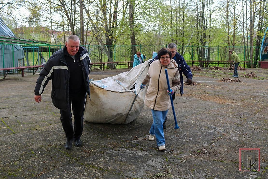 Гарадскі парк — месца правядзення шматлікіх культурных мерапрыемстваў. Таму і не дзіўна, што тут шчыравалі работнікі аддзела культуры райвыканкама, Цэнтра культуры і народнай творчасці, раённага Дома культуры, цэнтральнай раённай бібліятэкі. Ідучы ад будынка райвыканкама па набярэжнай, яны назбіралі некалькі мяшкоў пластыкавых бутэлек, рознага смецця, пакінутага рыбакамі і іншымі гараджанамі. Вялікі аб’ём работы ўдзельнікі рэспубліканскага суботніка выканалі і каля летняга амфітэатра, на былой танцпляцоўцы: выграблі мінулагодняе лісце, сабралі шмат бутэлек з-пад піва і спіртнога.
