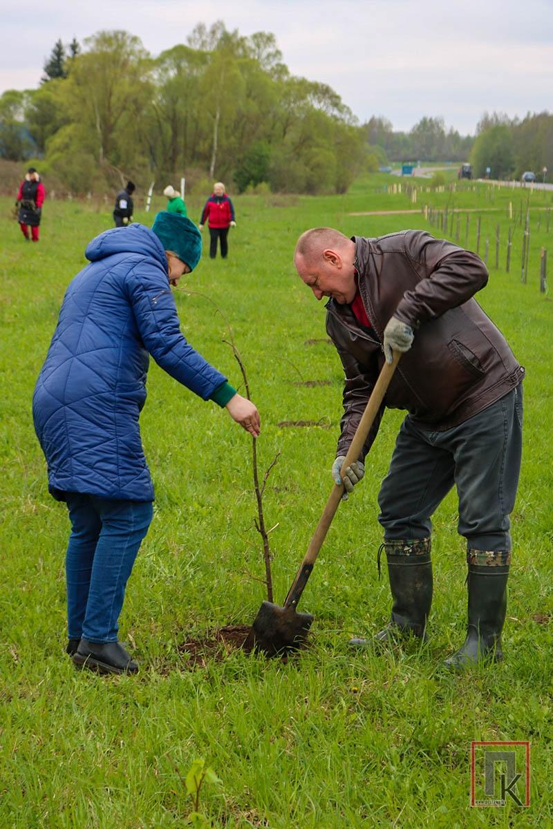К 9 гадзінам у суботу на вуліцы Міру ў райцэнтры сабраліся работнікі аддзелаў ідэалагічнай работы і па справах моладзі райвыканкама, арганізацыйна-кадравага, раённай інспекцыі прыродных рэсурсаў і аховы навакольнага асяроддзя. Да іх далучыліся старшыня райвыканкама Сяргей Чэпік, яго намеснік Станіслаў Чымбург, старшыня раённага Савета дэпутатаў Юрый Кісялёў. Адна машына УП ЖКГ прывезла лапаты, саджанцы ліпы і клёну, другая — ваду. Настрой ва ўдзельнікаў суботніка быў цудоўны. Усе з энтузіязмам узяліся за работу: абчэсвалі калкі, разносілі саджанцы да вызначаных месцаў пасадкі, рыхтавалі шпагат для падвязвання дрэўцаў. Сяргей Чэпік першым узяў у рукі лапату і разам з галоўным спецыялістам райінспекцыі Юліяй Трафімавай пачаў садзіць дрэўцы ўздоўж вуліцы Міру ў бок Рамелек.