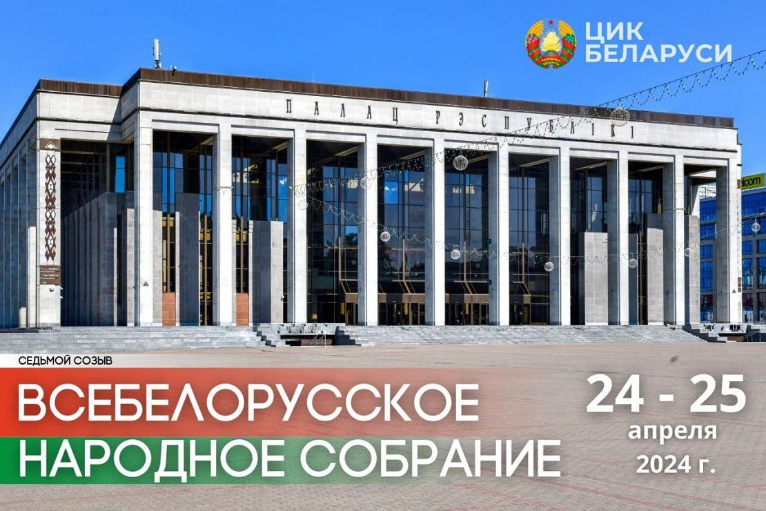 ЦИК Беларуси принято решение о созыве первого заседания Всебелорусского народного собрания седьмого созыва 24 – 25 апреля 2024 г. в городе Минске.
